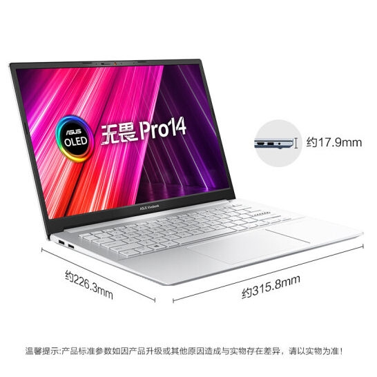 华硕无畏Pro15 酷睿版 2.8K OLED屏轻薄笔记本电脑(英特尔酷睿i5标压 16G 512G 100%DCI-P3 600nit 90Hz) 自营